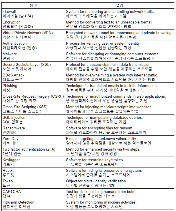네트워크 및 보안 관련 단어