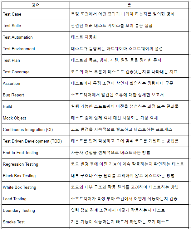 테스트 관련 영어 단어