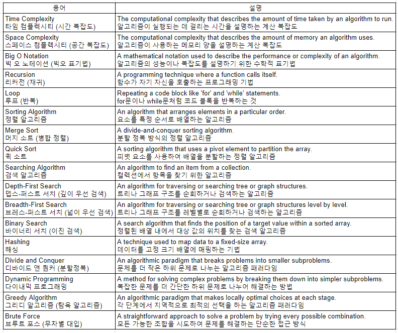 알고리즘 관련 영어 단어