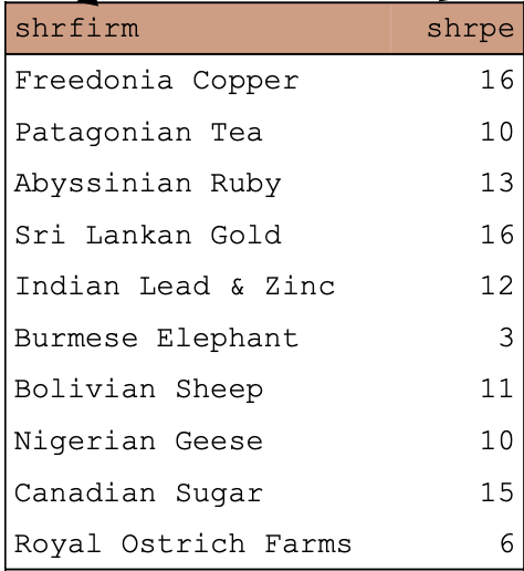 만약 shrpe 의 값이 같을 경우 shrfirm 이라는 조건을 비교하여 차순을 결정한다.