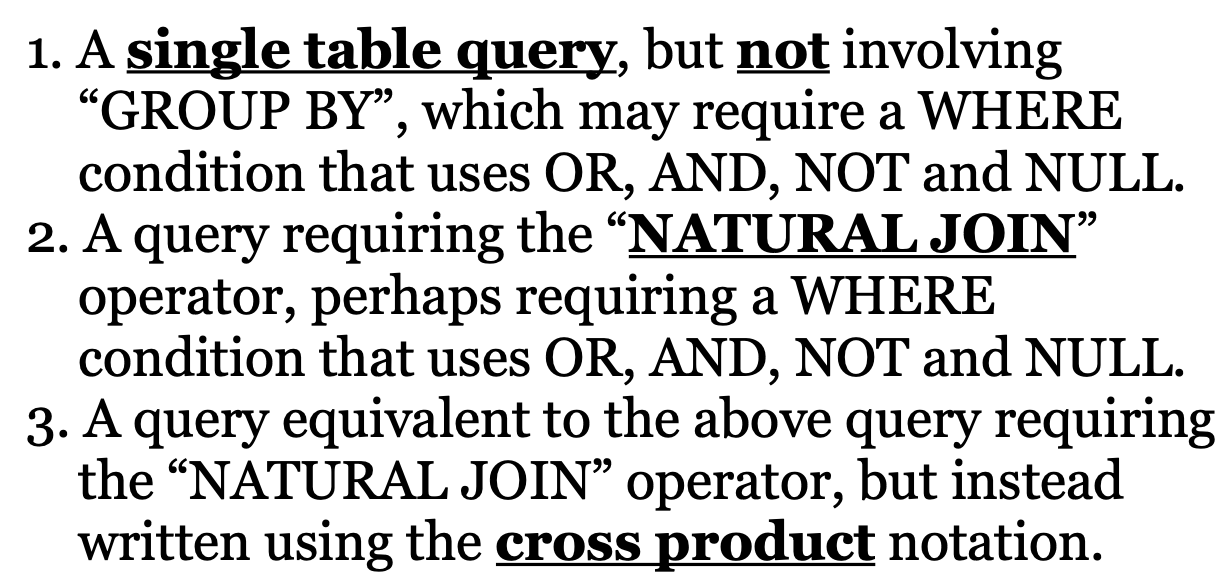 2. 'Natural Join" 연산자가 필요한 쿼리, WHERE 조건문과 OR, AND, NOT and NULL을 이용해보기.